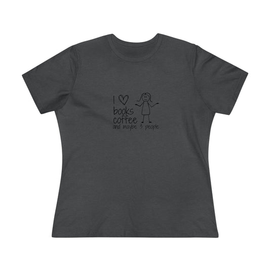 I Like Books, Coffee, & Maybe 3 People Premium Tee